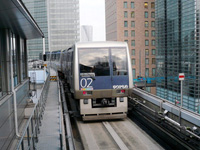 新橋からレインボーブリッジを渡り,お台場・国際展示場を通って豊洲までを走るゆりかもめの沿線には多くの観光施設があります。 新交通車両では,初めて側扉を2ヶ所設置して乗降がスムーズになりました。また側扉にプラグドアを採用する事で,側面の凹凸を少なくしスッキリした外観です。客室内はオールクロスシートで,車椅子スペースには折り畳み腰掛が設置されています。新潟鐵工所製は02・03編成。