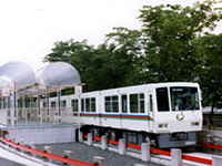 通称「レオライナー」は西武遊園地駅から西武球場を結ぶ西部山口線を走る新交通システムです。運転間隔は通常20分に1本ですが,西武ドームでの野球が開催されると臨時列車が運行し,野球ファンの足として活躍しています。白い車体に青・赤・緑3本の帯を巻いた「ライオンズカラー」が目を引く車両です。角ばったデザインの車体で,前面にはライオンズマークが取り付けられています.客室内は固定式のクロスシートが並んでいます。
