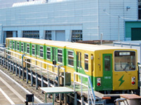 「ニューシャトル」の愛称が定着している埼都交伊奈線は,鉄道のまち大宮と郊外の内宿を結ぶ路線です。新幹線の隣をのんびりと武蔵野の自然を眺めながら全線を25分程度で走っています。沿線には2007年10月に開館した「鉄道博物館」や「古代蓮」が咲く原市沼があります。黄色の車体にグリーンのラインが入った6両編成の車両です。