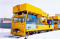 線路上に降り積もった雪を排雪するモータカーです。前位、後位側共に排雪する為の雪鋤を装備し、軌道上の雪を排雪します。 雪の無い季節には、雪装備を取外し、レール運搬や、材料運搬のモータカーとして使用されます.単線仕様と複線仕様があります。