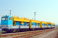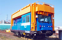新幹線の電柱及び固定ビームの老朽取替工事に使用するモータカーです。 吊上げ荷重4.9トンの油圧式クレーンを装備しています。