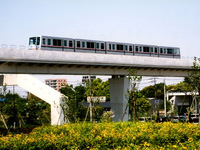 台湾の空の玄関口,台湾桃園国際空港の第1ターミナルと第2ターミナル間をシャトル運転しています。北路線と南路線があり,航空機の乗継そして空港内従業員の移動に活躍しています。車両は,ステンレス車体に赤と黒のラインが入った1両編成です。南路線では,当社の新交通システムで,唯一連結運転を実施しています。 台湾の気候に合わせて,冷房装置の容量をアップしているなどの特徴があります。