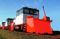 線路上に降り積もった雪を排雪するモータカーです。前位、後位側共に排雪する為の雪鋤を装備し、軌道上の雪を排雪します。 雪の無い季節には、雪装備を取外し、レール運搬や、材料運搬のモータカーとして使用されます.単線仕様と複線仕様があります。