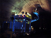 新幹線のトンネルの覆工コンクリートの検査及び修繕を行うモータカーです。 アーチ部検査台、接合部検査台、昇降旋回作業台が装備され、トンネル内の隣接線側の壁面へのアクセスも可能としています。